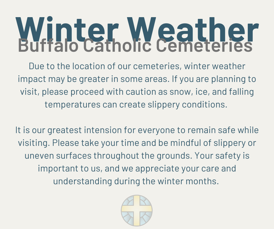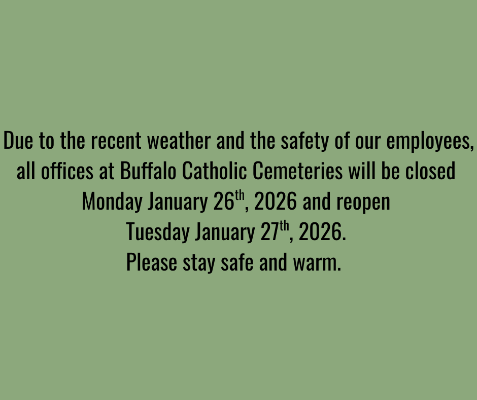 The Catholic Cemeteries of Buffalo is honored to provide you and your family the guidance and comfort you need. We are here to serve you, whether planning ahead, or at your time of need. We provide compassionate care with the highest level of integrity in accordance with the values and traditions of our faith.